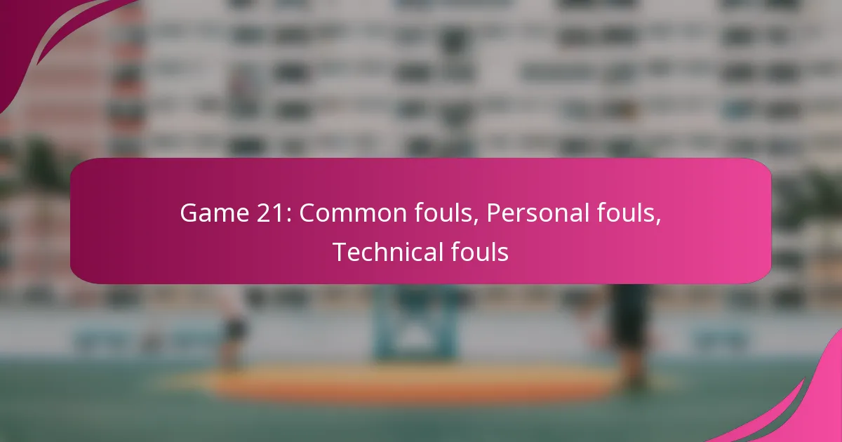 In Game 21, understanding the different types of fouls is crucial for maintaining fair play and enhancing performance. Common fouls disrupt the game and can lead to penalties, while personal fouls involve rule violations by players that affect both individual and team dynamics. Technical fouls, on the other hand, are non-contact infractions that can also influence the game’s flow and result in free throws for the opposing team.